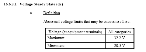 operating voltage limits for 28v systems apply here . . .