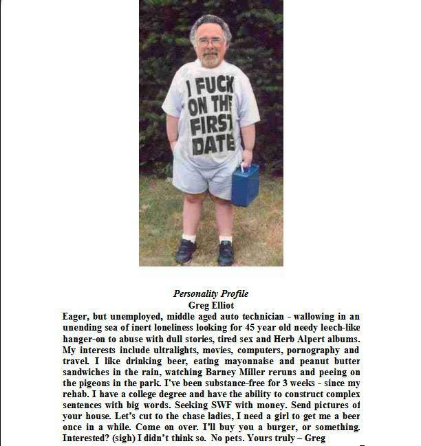 Quote “Bitter, but successful, middle aged slumlord wallowing in an unending sea of inert loneliness looking for 35 year old needy leech-like