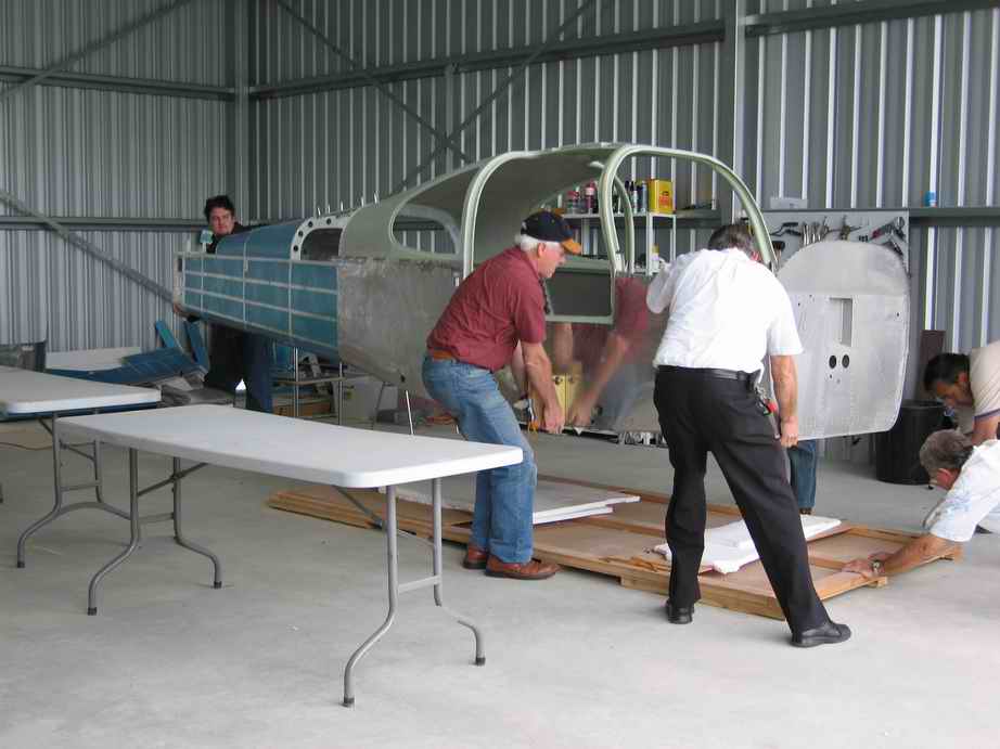 This sounds like a good way to join the half. I plan on doing it. As to the question about putting the legs on I have found this hydraulic cart from harbor freight a great tool in working on the fuselage. It cost a couple hundred bucks but it has been very useful around the shop for other things, like moving a heavy metal bending tool. It is easy to move around and adjust to the right height and is narrow enough and makes a pretty stable platform. I can see it would be better with the gear legs on when crawling around in it to make it stable. Check it out on my site it is about 16 pictures down the page at http://www.etigerrr.com/Fuselage/section_28_fwd_fuse_ribsP28_16.htm