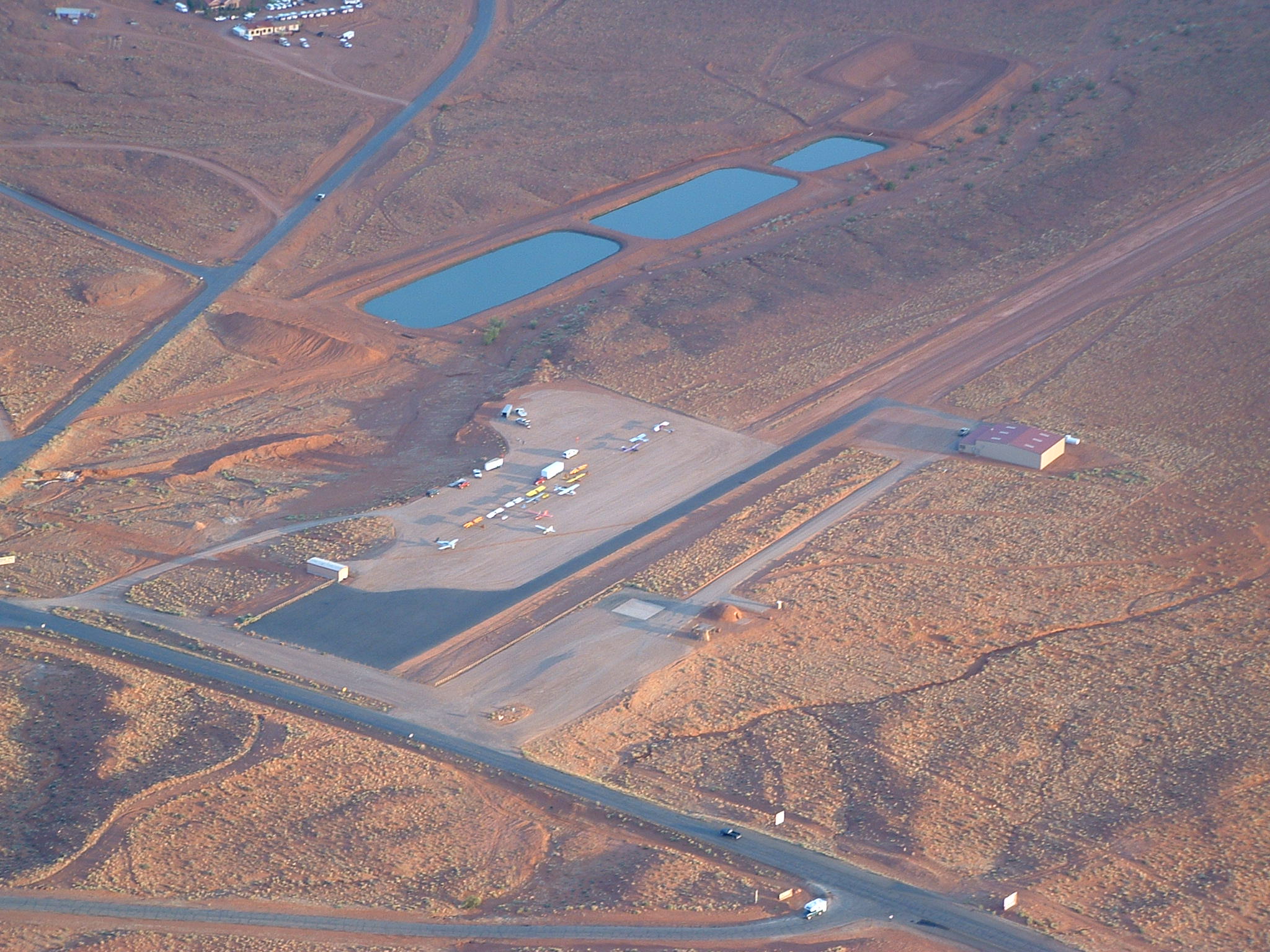 Here's the best shot of the strip I have from this year. All that is missing is a little bit of the other end of the dirt strip with open desert beyond. The first part is paved and the rest is dirt... goes downhill on takeoff to the North so landings are landing uphill from the north. Kolbs are generally off the ground before the pavement ends on takeoff. The runway comes up to greet you so you just flare and the runway plus sink makes for easy landings... except for rookies that haven't done it before... many first timers have a rough landing or two until they get the hang of it. Maybe others have a better photo to share.